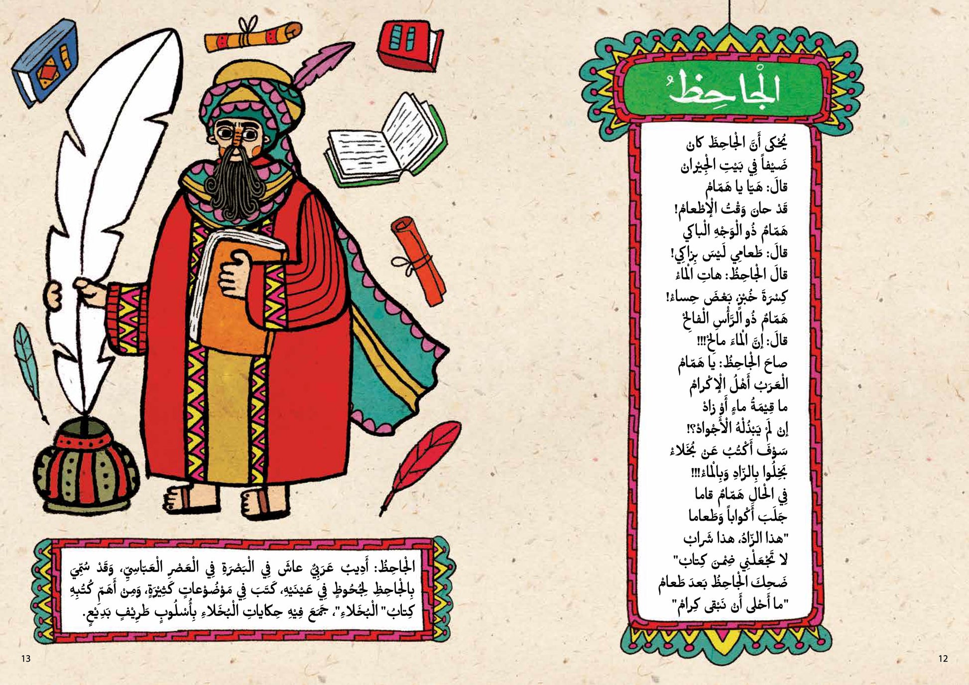 تاريخُنا العربيُّ حافلٌ بقصص جميلةٍ ذاتِ عِبَرٍ وفوائدَ.. قصصٌ عن ناسٍ فيهم البطلُ الشجاعُ وفيهم الأديبُ الموهوبُ، فيهم المرِحُ خفيفُ الظّل، وفيهم قليلُ الحيلةِ الساذَجُ، فيهم المغامرُ الجريءُ، وفيهم السيّدةُ القويّةُ الوفِيّةُ والملكةُ الحكيمةُ..