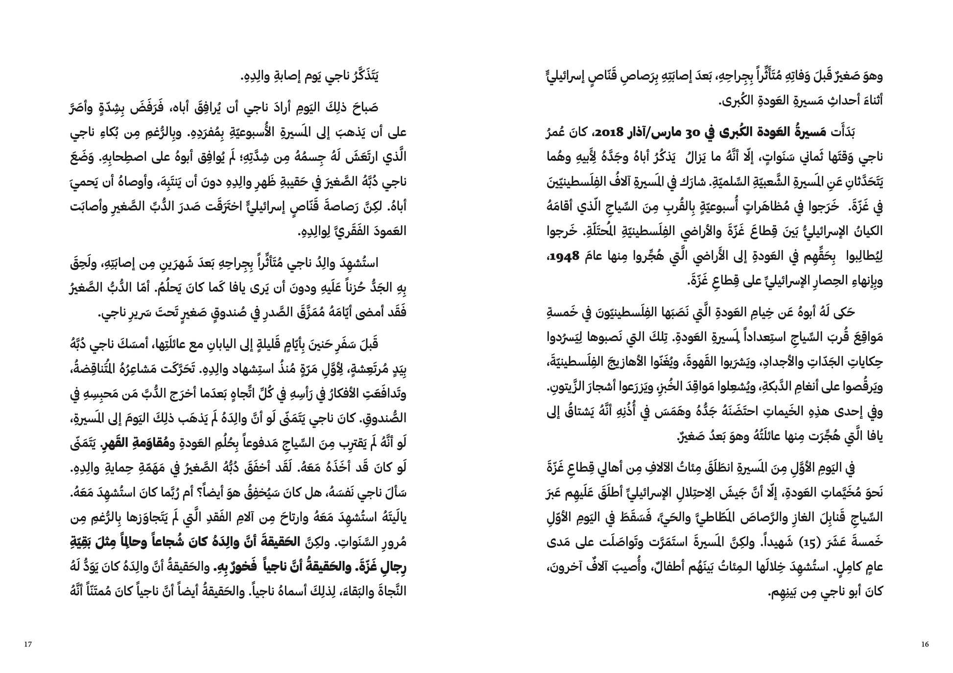 ناجي فتى من غزّةَ، أهدَته أمُّه كاميرا حديثةً ليُصوِّرَ بها كلَّ ما يراهُ جميلاً، وعلّمته أن ملاحظةَ الجمال ومتابعتَه وتقديرَه؛ فعلٌ مقاوِمٌ للحزن والألم. لكن كيف لناجي أن يرى الجمالَ وسَطَ حربٍ يشهَدُها قِطاع غزّةَ، ليست كغيرها من الحروب. وهل يُمكنُ لفنٍّ نشأَ في اليابان منذُ أكثرَ من أربعمائة عامٍ أن يساعدَه؟